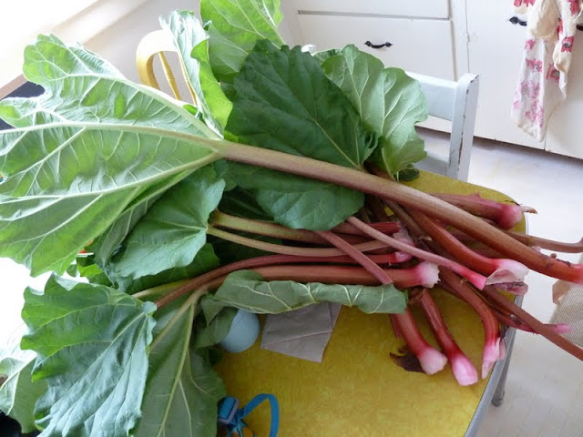 Our neighbor, Katherine, gave us a bunch of rhubarb roots and they are starting to grow (no thanks to the chickens!!). I guess you aren't supposed to cut the stalks the first year, they need to work on getting established. But Katherine's Rhubarbs are out of control and she said I can have some whenever I want. I made rhubarb apple sauce.